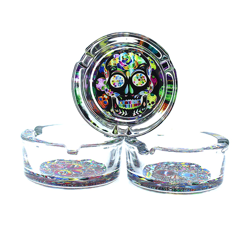 Cenicero de cristal LC de bolsillo redondo sin humo para cigarros, Cenicero portátil con logotipo personalizado para fumar, accesorios para fumar